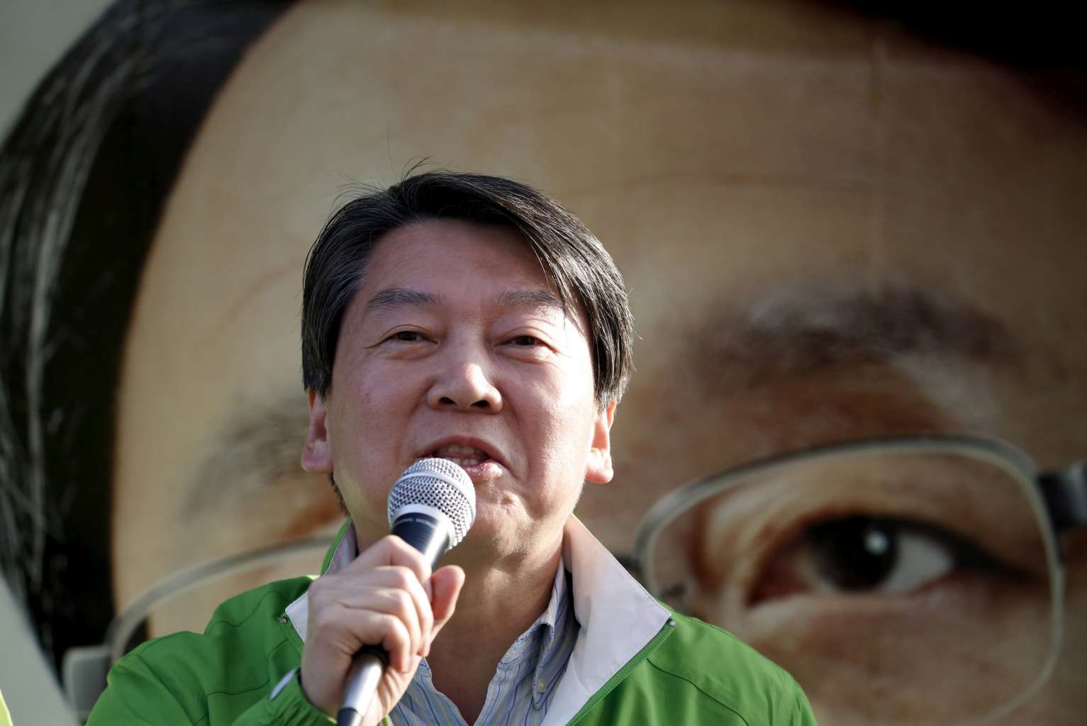Ahn Cheol Son, People's Party co-chairman, attends a rally in Seoul, South Korea, on April 11, 2016.