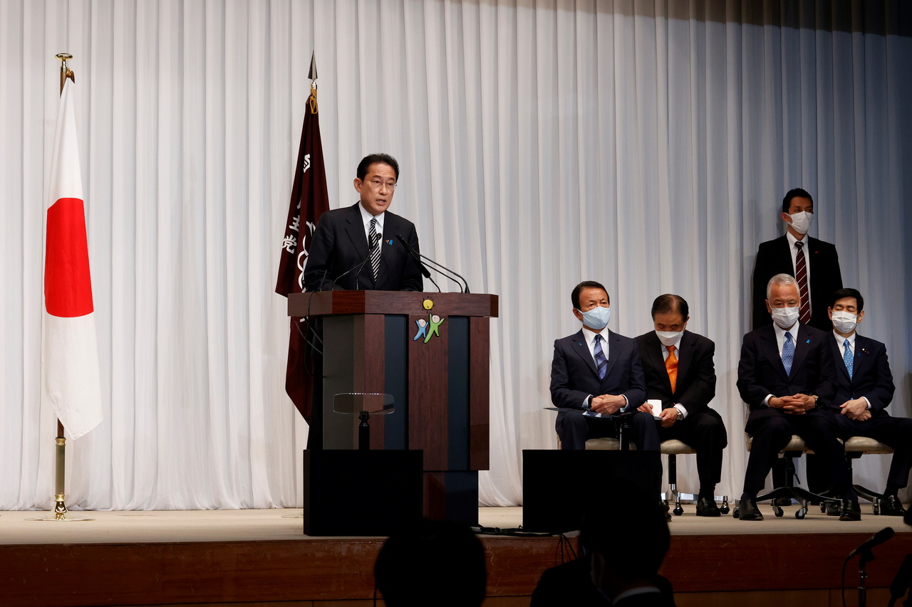 Japan's Prime Minister Fumio Kishida speaking after his party's victory in the Lower House elections on Nov 1, 2021.
