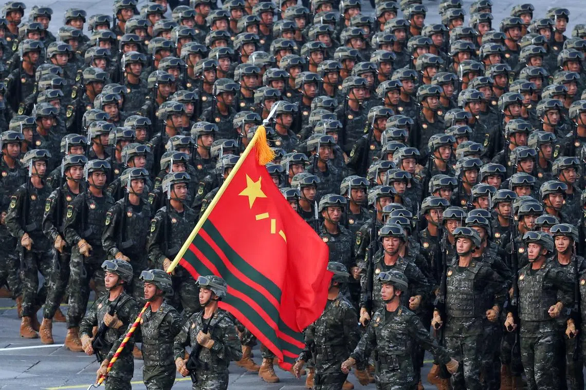 Chinese servicemen march in formation before a military parade in Beijing on Sept 3.