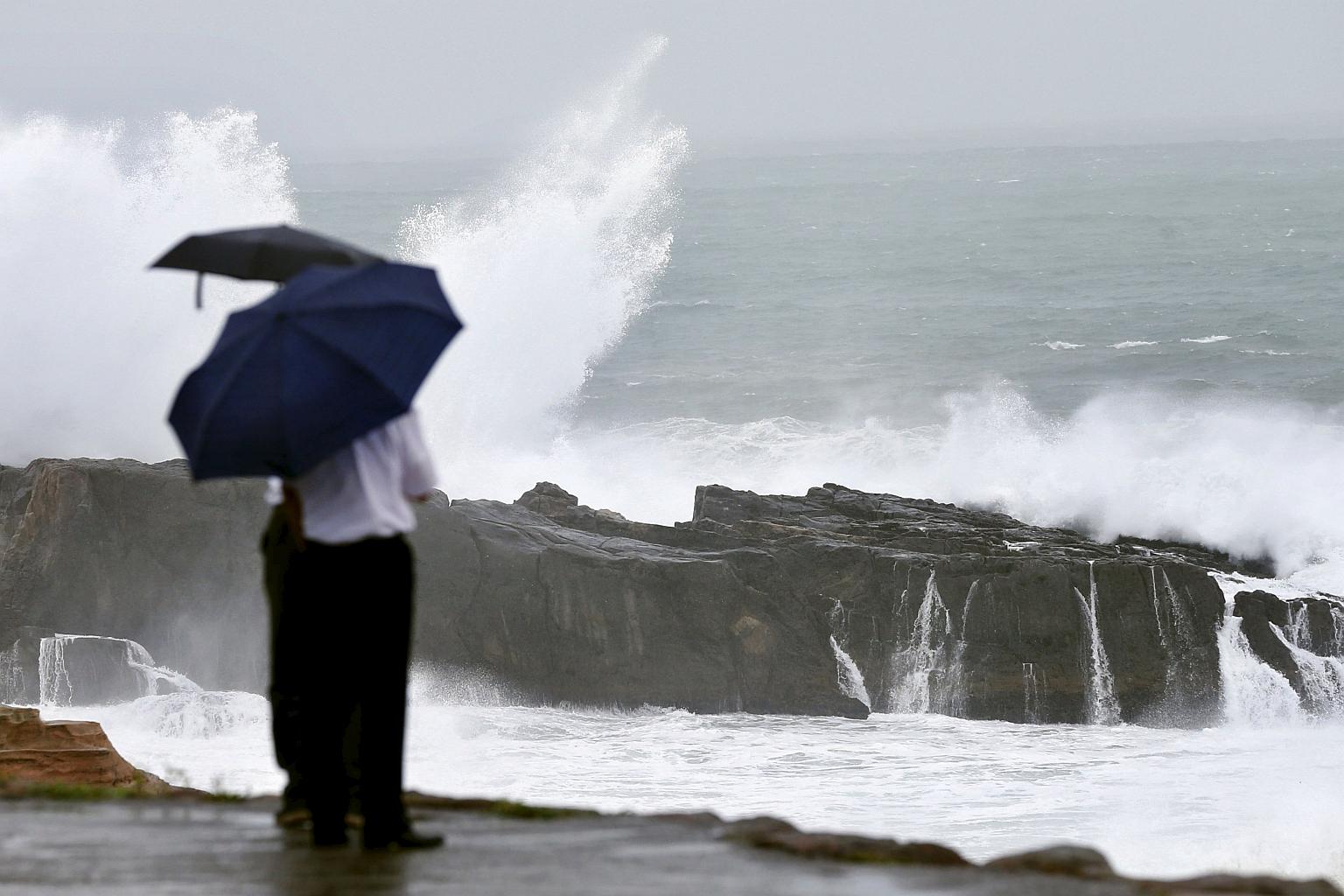 Waves caused by Typhoon Nangka breaking on the shores of Senjojiki, Wakayama prefecture, on July 16.