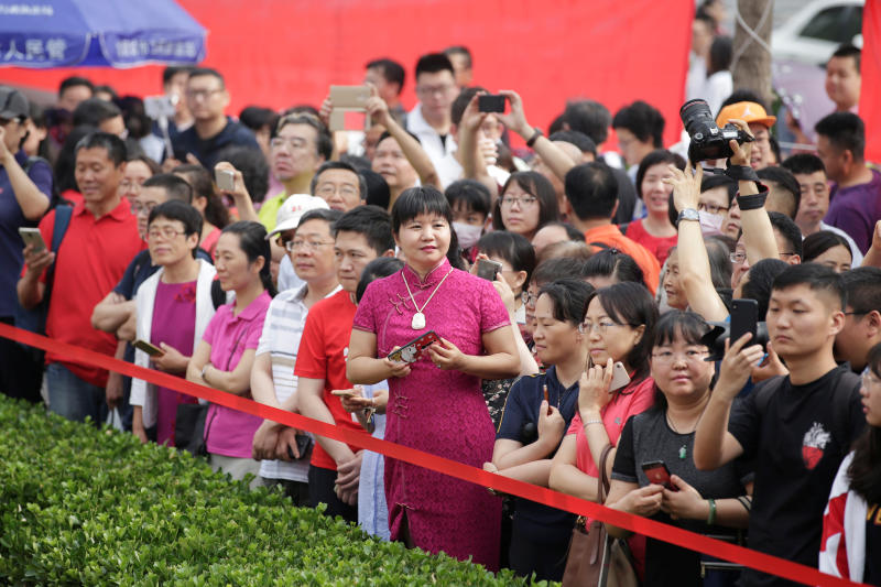 Parents and relatives are seen as students arrive at the High School affiliated to Renmin University of China for the first part of China's annual national college entrance exam, or "gaokao”, in Beijing on June 7, 2019.