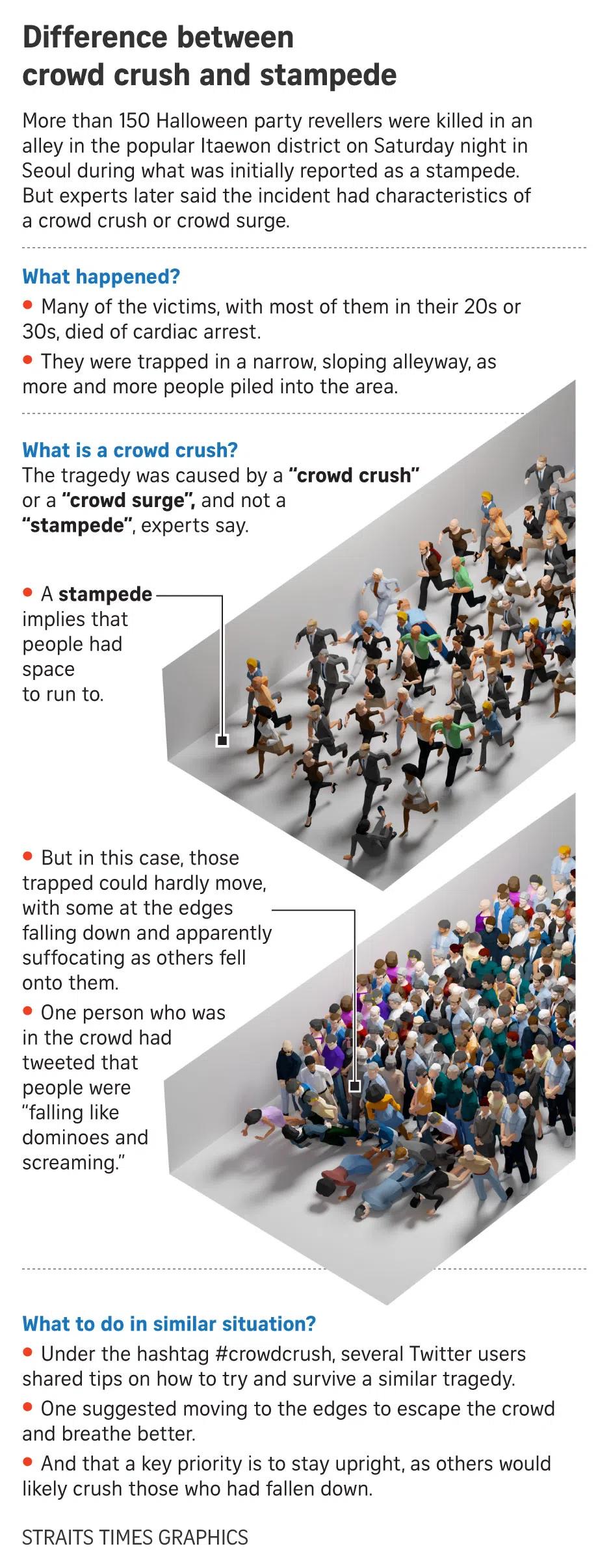 SEOUL - As South Koreans mourn the death of 155 people in an unprecedented crowd crush at Seoul’s nightlife district Itaewon