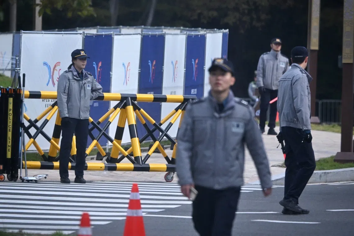 Police officers near the international media centre for the Apec summit in Gyeongju on Oct 31.