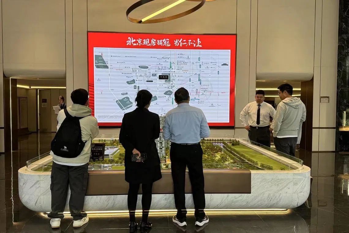 Potential buyers viewing property development Royal Mansion’s show-flat in Beijing on Oct 6.