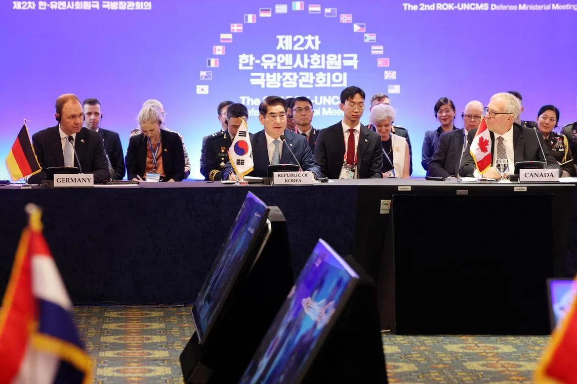 South Korean Defence Minister Kim Yong-hyun (centre) speaking at the second meeting of defence ministers from South Korea and 16 member states of the United Nations Command on Sept 10.