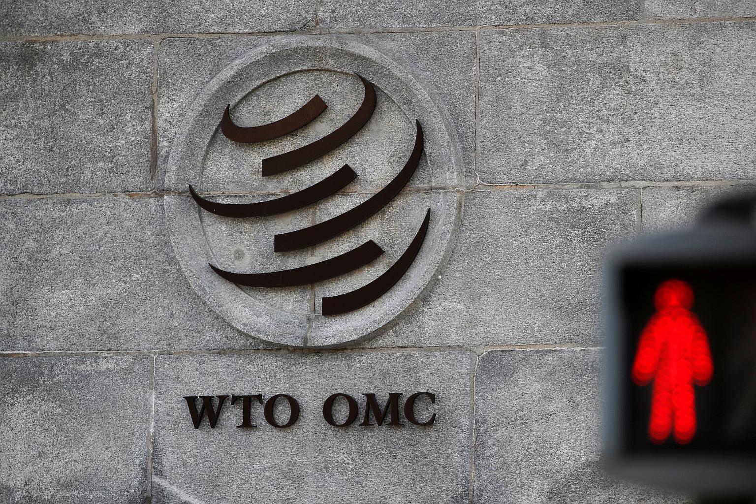 A logo pictured outside the World Trade Organisation headquarters next to a red traffic light in Geneva, Switzerland, on Oct 2, 2018.
