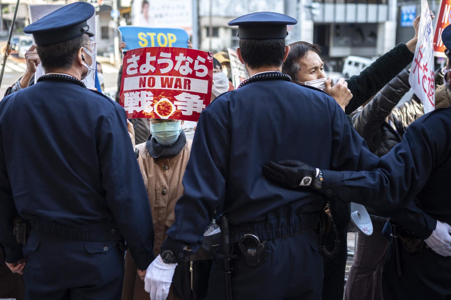 Activists protesting in front of the Russian Embassy in Tokyo on March 10, 2022.