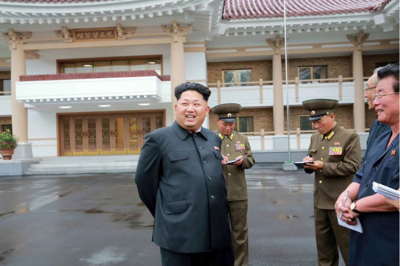 North Korean leader Kim Jong-un visiting a nursing home for the elderly in Pyongyang, North Korea.