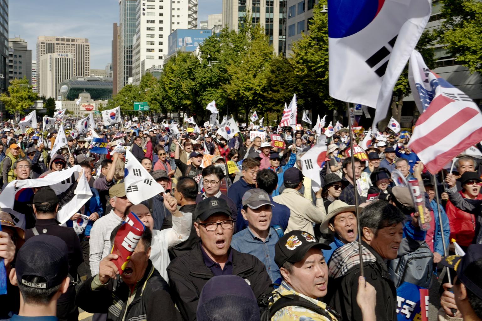 During recent holidays, tens of thousands of protesters staged demonstrations, including in downtown Seoul on Wednesday (Oct 9).
