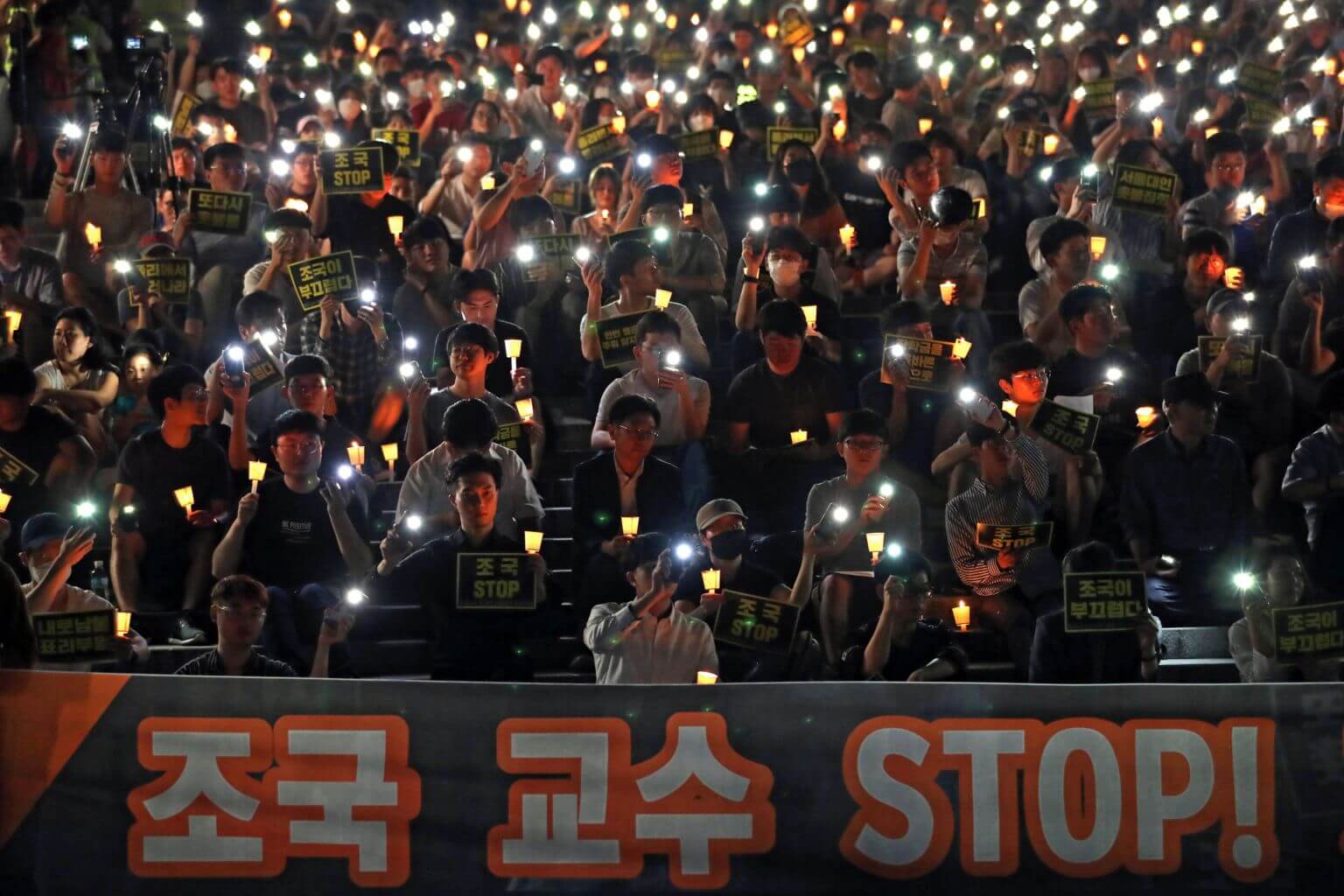 Students at South Korea's top universities, including Seoul National University (SNU) where Mr Cho is a professor of law, have held candlelight demonstrations calling for him to give up the nomination, reminiscent of the protests that swept Mr Moon into power in 2017.