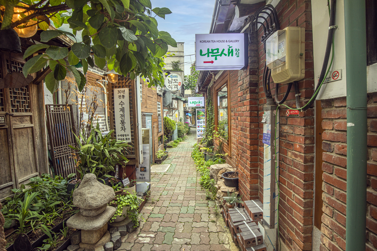 Ikseondong in central Seoul, a new hotspot featuring restaurants and cafes transformed from old hanok (Korean traditional house).