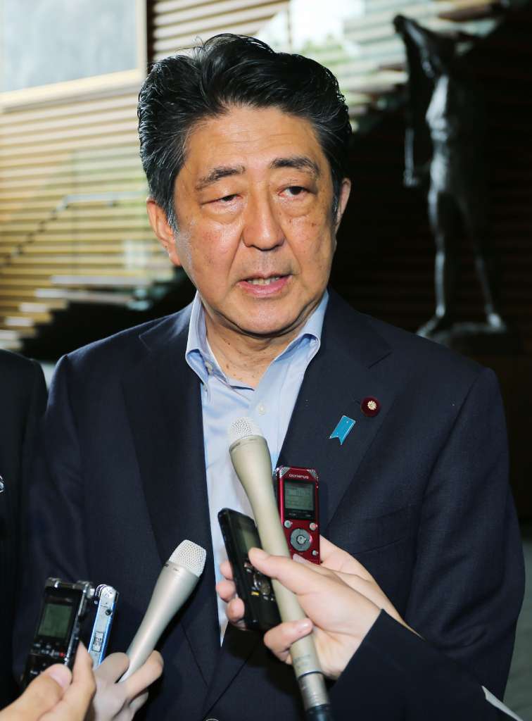 Japanese Prime Minister Shinzo Abe speaks to journalists after a Cabinet meeting on the siege.