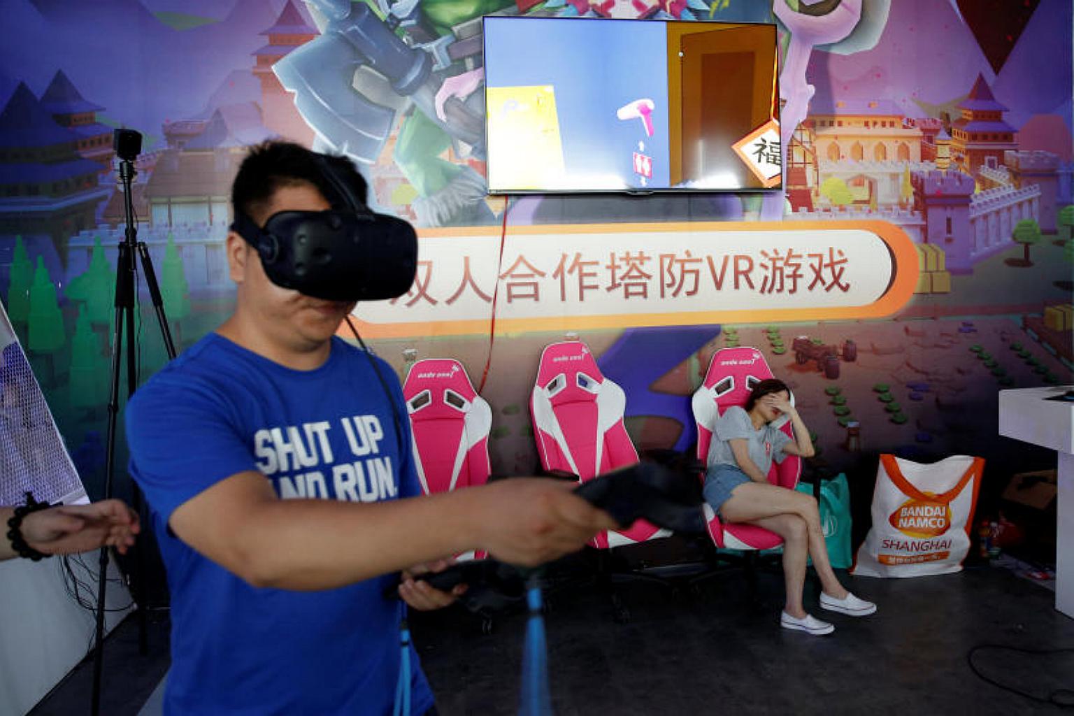 A man tries Virtual Reality games at the 15th ChinaJoy, or China Digital Entertainment Expo and Conference, in Shanghai on July 27, 2017.