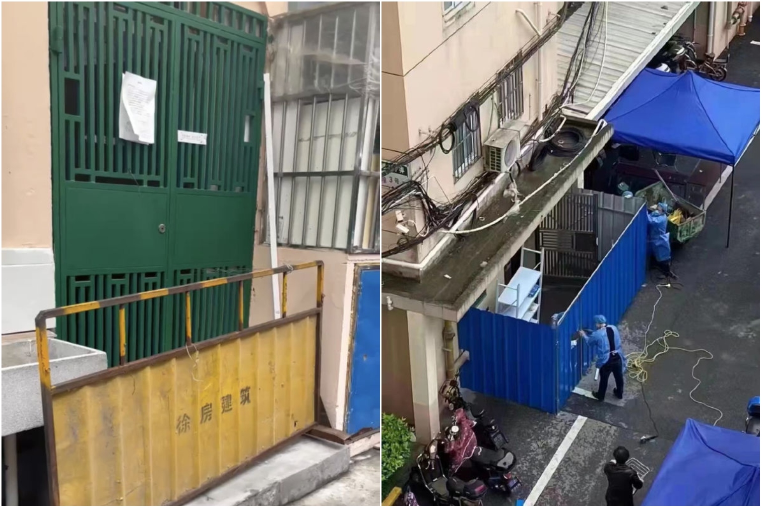 Images of workers clad sealing entrances of housing blocks with tall green fencing went viral on social media on April 23.