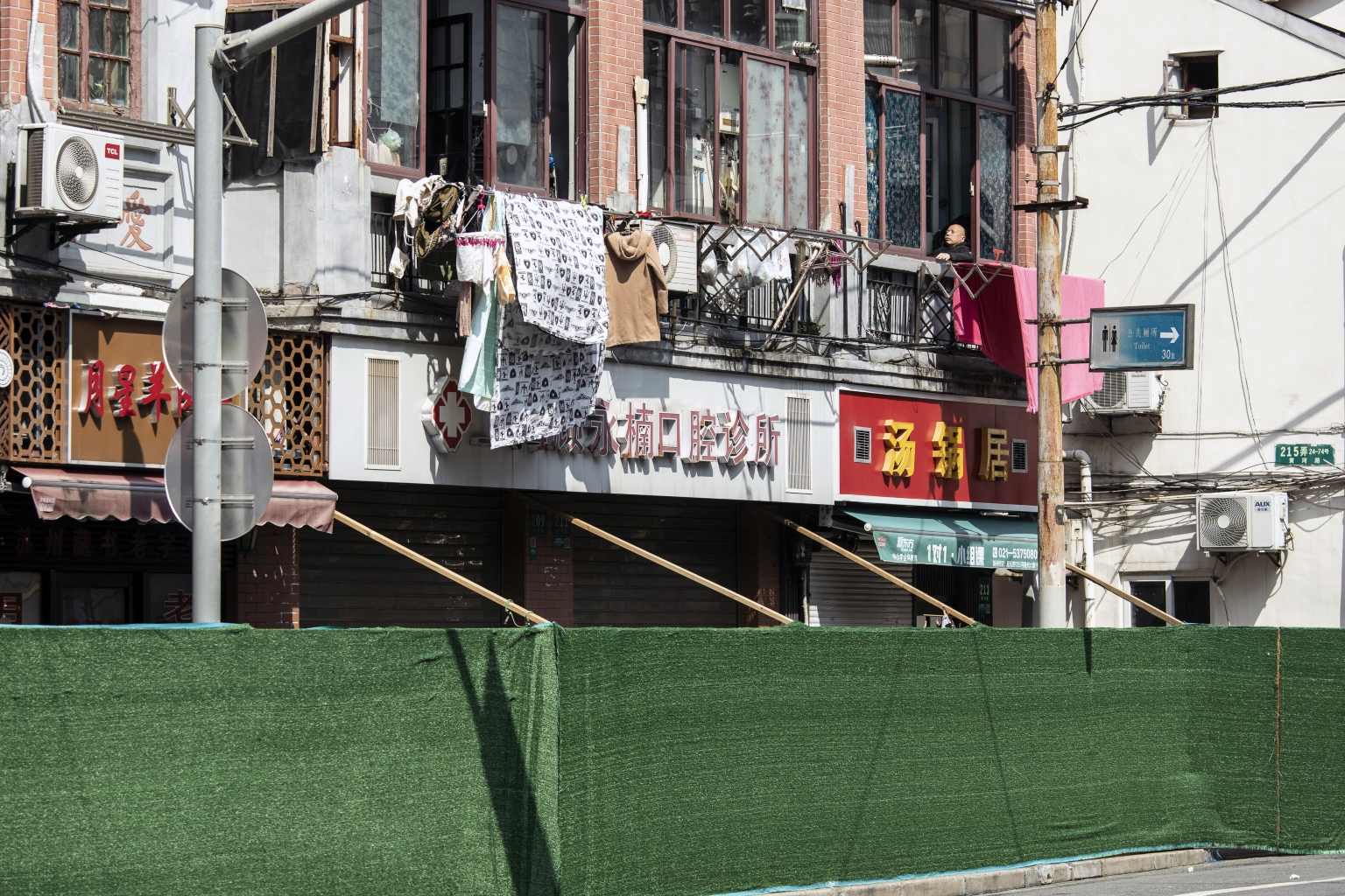 A resident sits by a window at a neighborhood during a lockdown in Shanghai on May 3, 2022.
