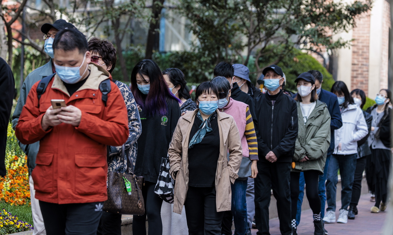 People queue for Covid-19 mass testing in public park in Shanghai on March 15, 2022.