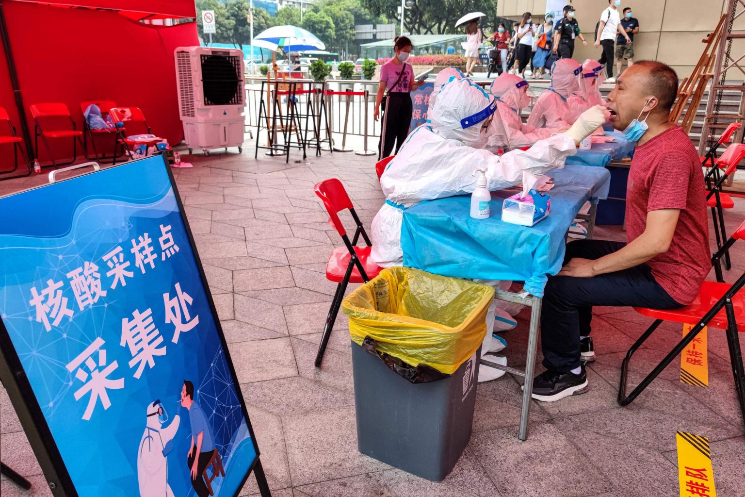 A man taking a nucleic acid test in Shenzhen, in China's southern Guangdong province.