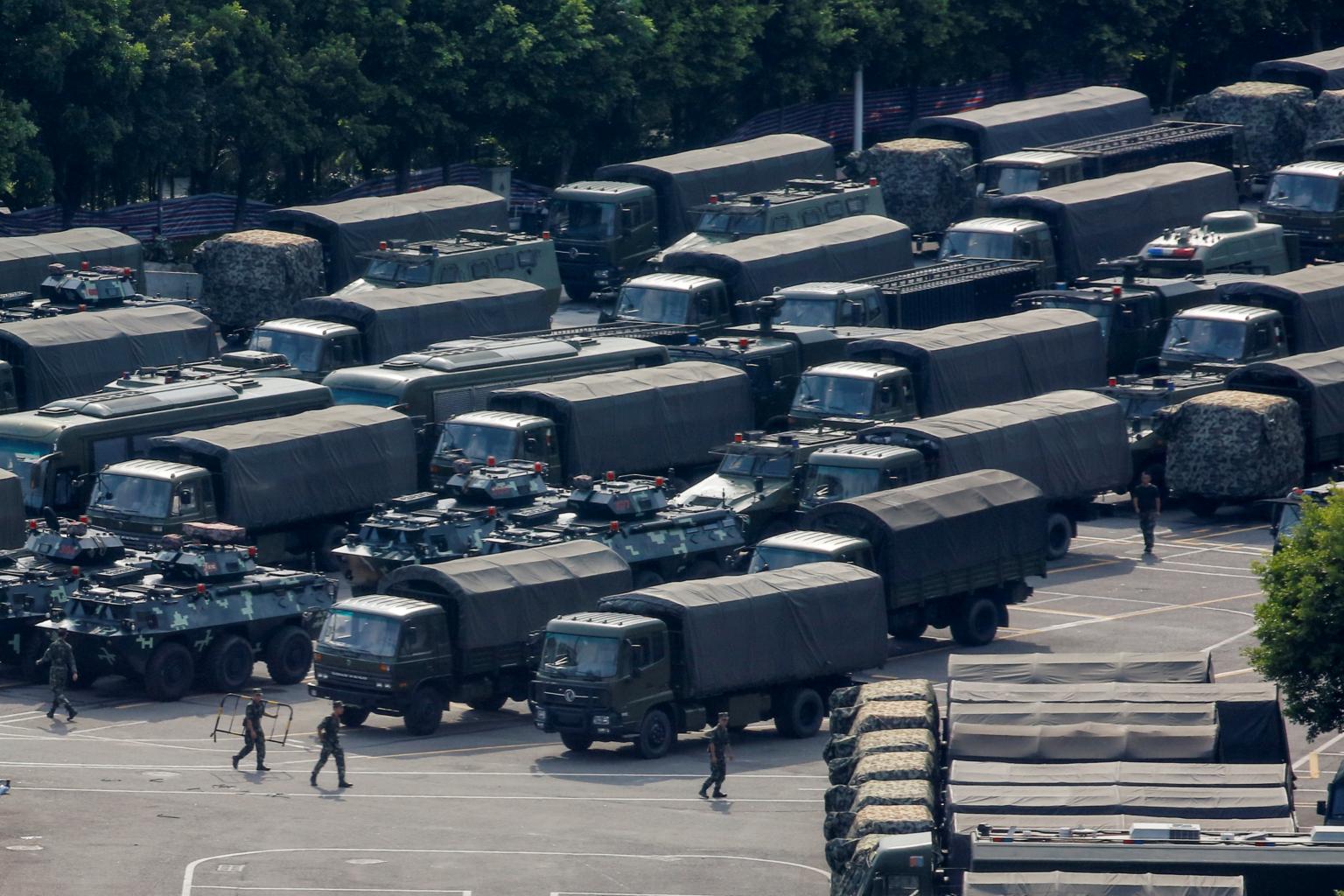 In recent days state media have broadcast images of Chinese military forces and armoured personnel carriers in the city - raising fears of a possible military intervention by Beijing.