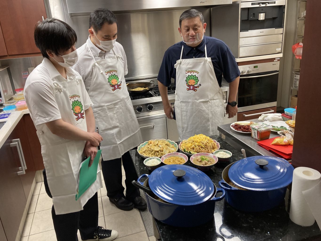 Singapore Ambassador to Japan Peter Tan (in blue), who is an excellent cook, has shared recipes of Peranakan dishes with the food development team of Japanese upmarket supermarket chain Seijo Ishii.