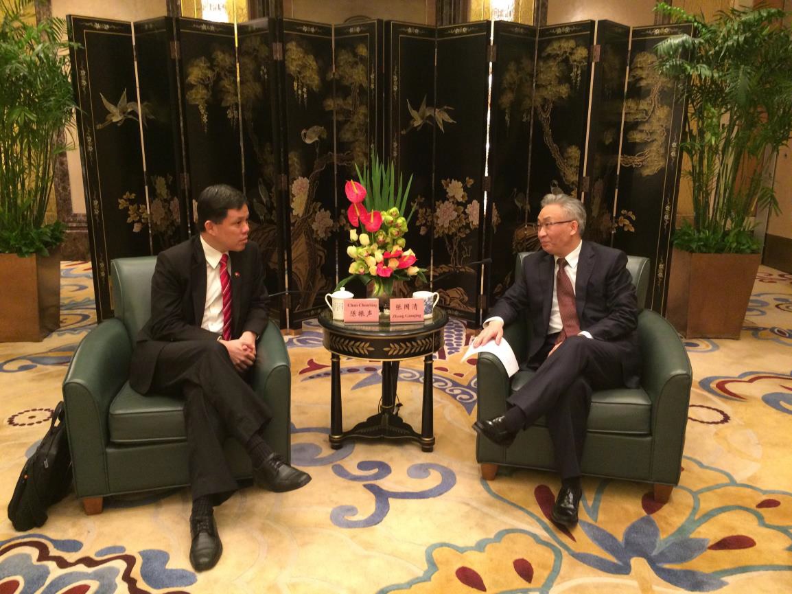 Minister in the Prime Minister's Office Chan Chun Sing (left) met Chongqing Mayor Zhang Guoqing on Feb 26, 2017 in Beijing. During the meeting, Minister Chan and Mayor Zhang reaffirmed the good progress made under the Chongqing Connectivity Initiative (CCI) and discussed new areas of cooperation such as the newly approved Chongqing Free Trade Zone.