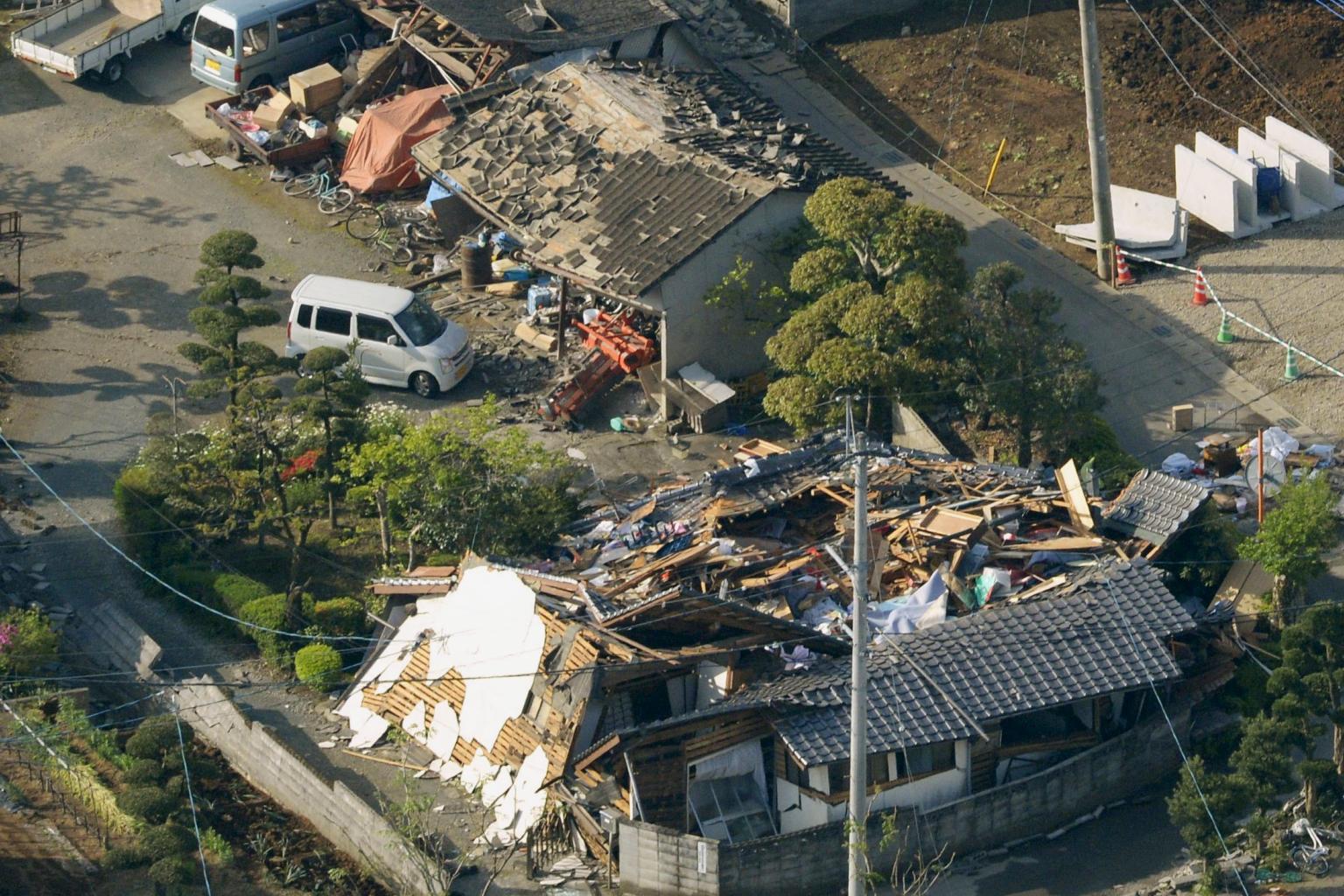 Collapsed houses caused by an earthquake in Mashiki town, Kumamoto prefecture, southern Japan on April 15, 2016.