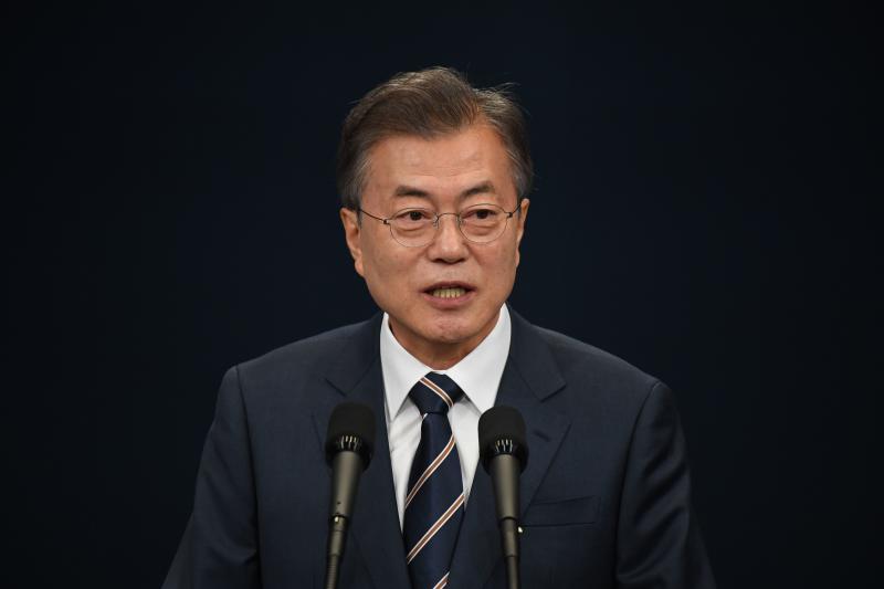 South Korea's President Moon Jae In at the presidential Blue House in Seoul on May 27, 2018.