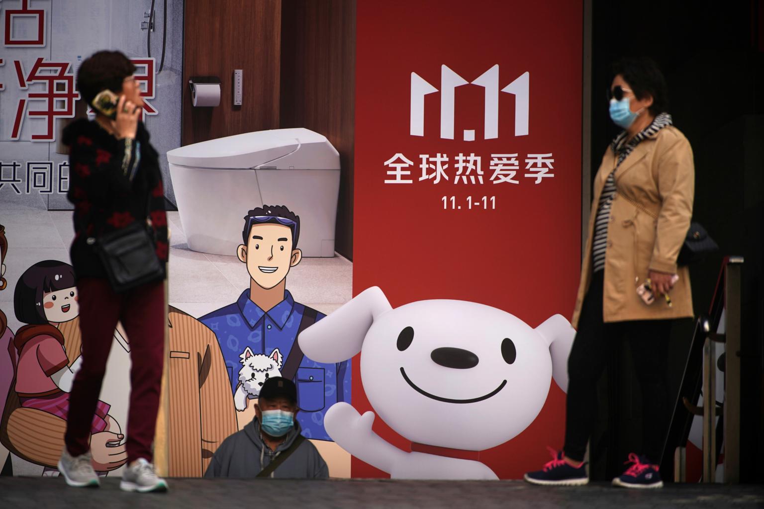 Advertisement to promote JD.com's Singles' Day shopping festival in Shanghai, China, on Nov 1, 2021.