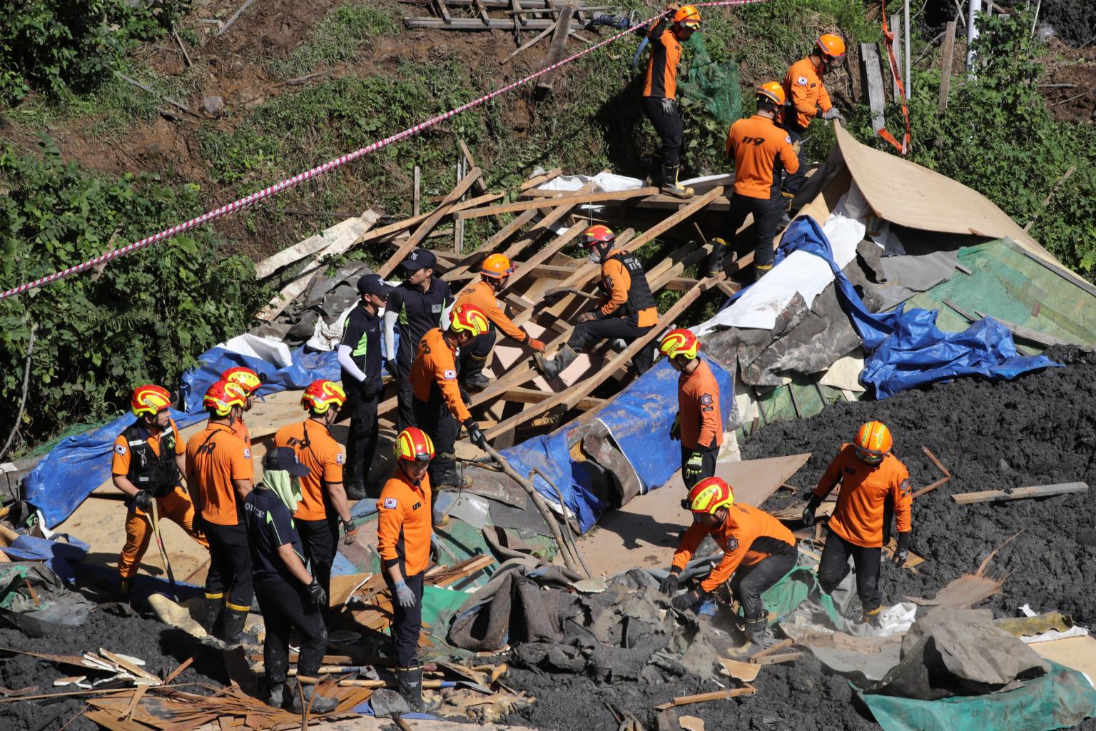 South Korea's firefighters search for missing people in an area struck by a landslide in the aftermath of Typhoon Mitag, in Busan, South Korea on Oct 3, 2019.