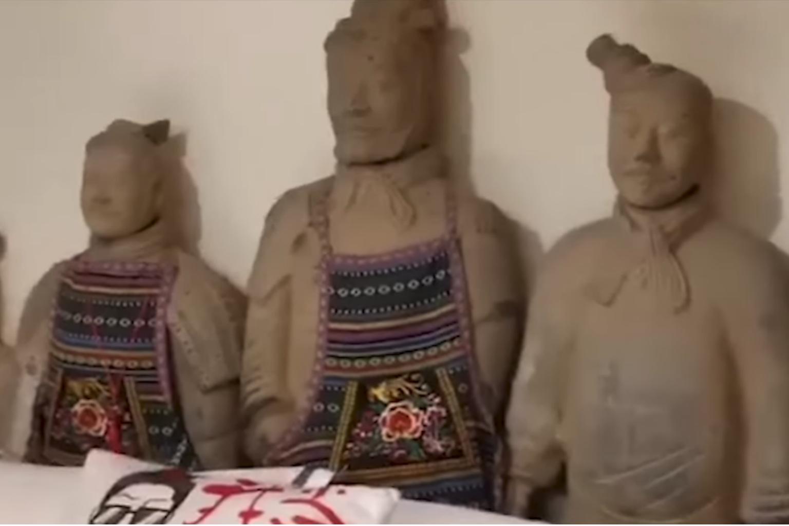 A hotel in Xi'an features three terracotta warrior themed suites, with more than 200 warrior replicas placed under the beds, the wash basins, in front of toilet seats and in the walls.