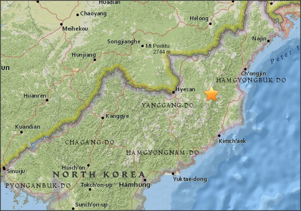 The quake was magnitude 2.7 with a depth of 3km in North Hamgyong Province in North Korea.