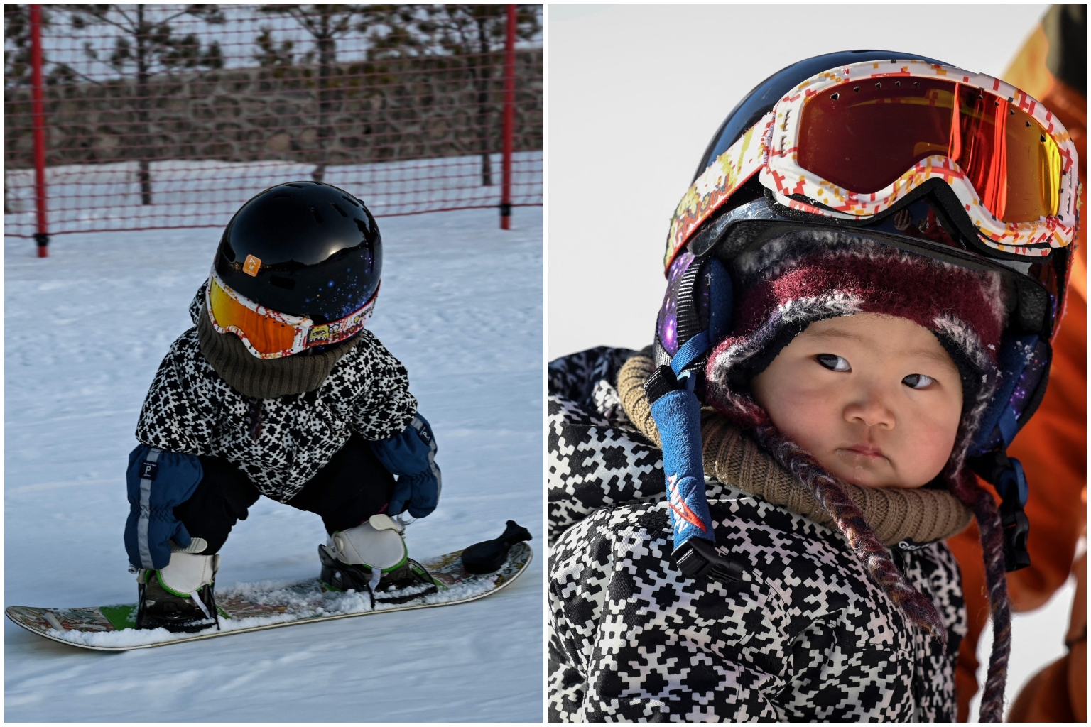CHONGLI, CHINA 2021 (AFP) - At just 11 months old, Wang Yuji can't even walk, but she is already snowboarding and taking the slopes - and the Internet - by storm.