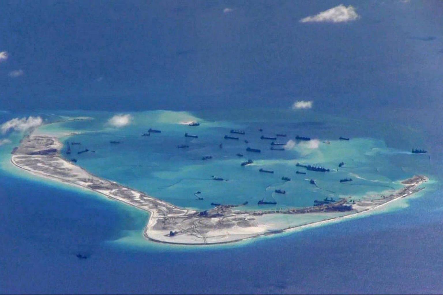 Chinese dredging vessels are purportedly seen in the waters around Mischief Reef in the disputed Spratly Islands in the South China Sea.
