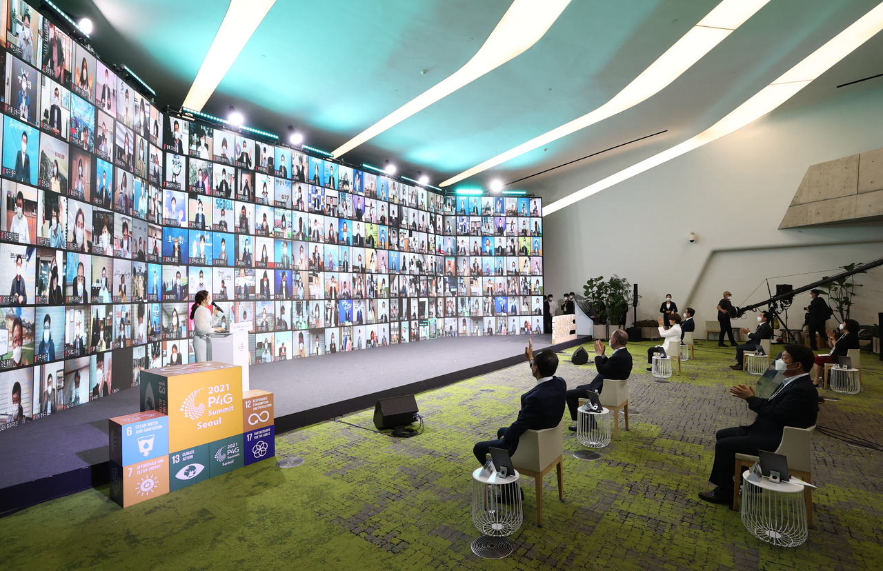 A special session of the P4G Seoul Summit being held at Dongdaemun Design Plaza in Seoul on May 24, 2021.