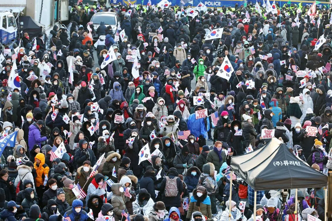 Supporters of South Korean President Yoon Suk Yeol during a protest near the presidential residence in Seoul, South Korea, on Jan 15.