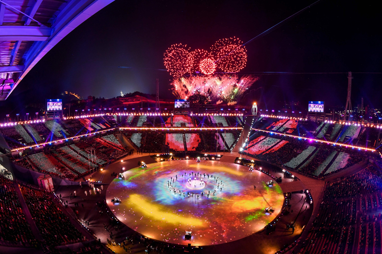 Fireworks are set off during the closing ceremony of the Pyeongchang 2018 Winter Olympic Games on Feb 25, 2018.