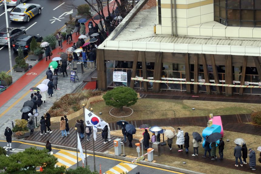 People wait to be tested for Covid-19 at a testing center in Seoul on Dec 16, 2021.