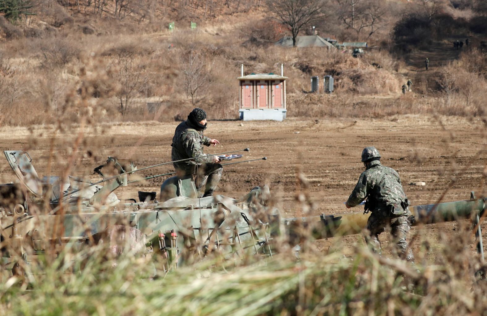 South Korea soldiers taking a break on their self-propelled artillery vehicle during a military exercise on Nov 29, 2017. Seoul raised the salaries of its rank-and-file conscripted soldiers on Jan 17, 2018.