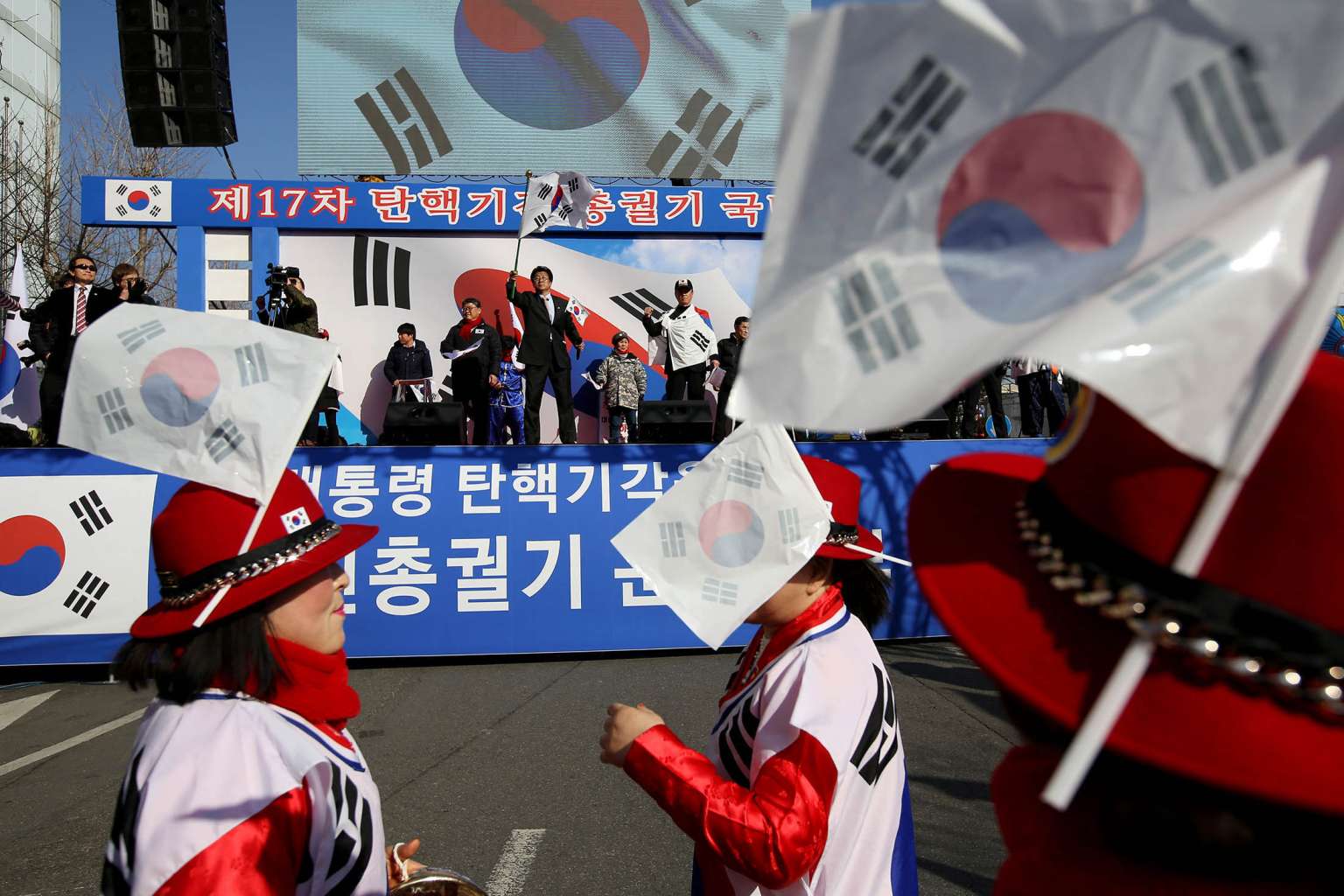 Supporters of Park Geun Hye holding at a protest outside the Constitutional Court of Korea ahead of the court's ruling on Park's impeachment in Seoul, South Korea, on Friday (March 10).