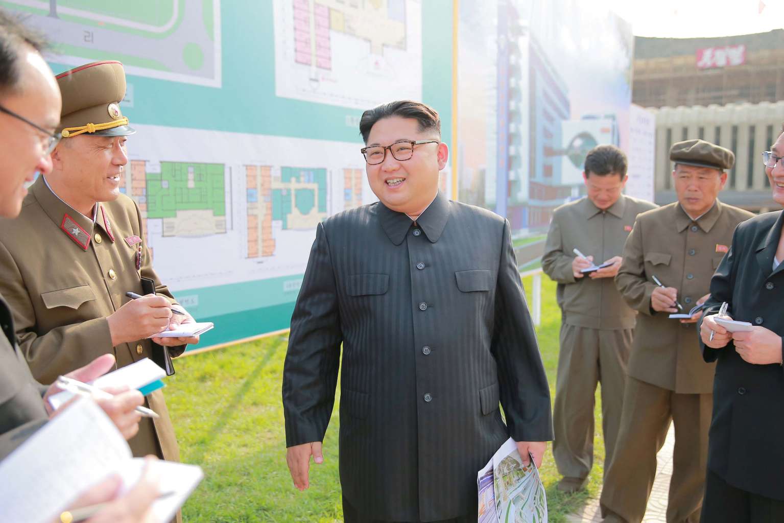 North Korean leader Kim Jong Un visits the Ryugyong General Ophthalmic Hospital under construction in this undated photo.