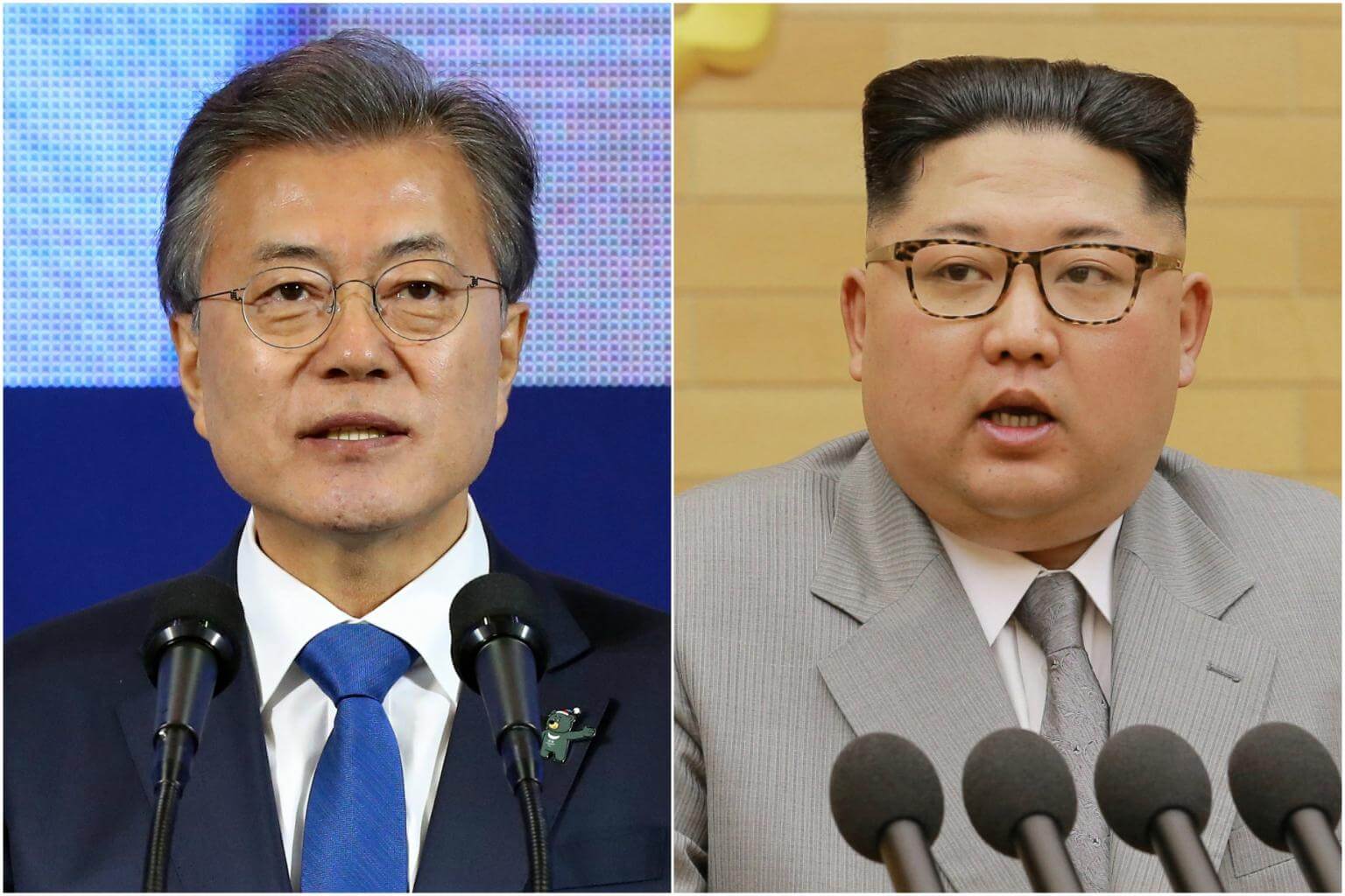 South Korean officials were set to convene their first meeting at the presidential Blue House to prepare for a summit between President Moon Jae In (left) and North Korean leader Kim Jong Un late next month.