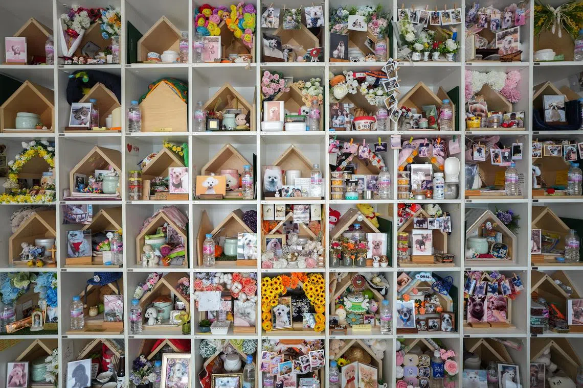 A columbarium at Pet Forest, which offers funeral-related services for pets, in a suburb of Seoul, South Korea, seen on Sept 4.