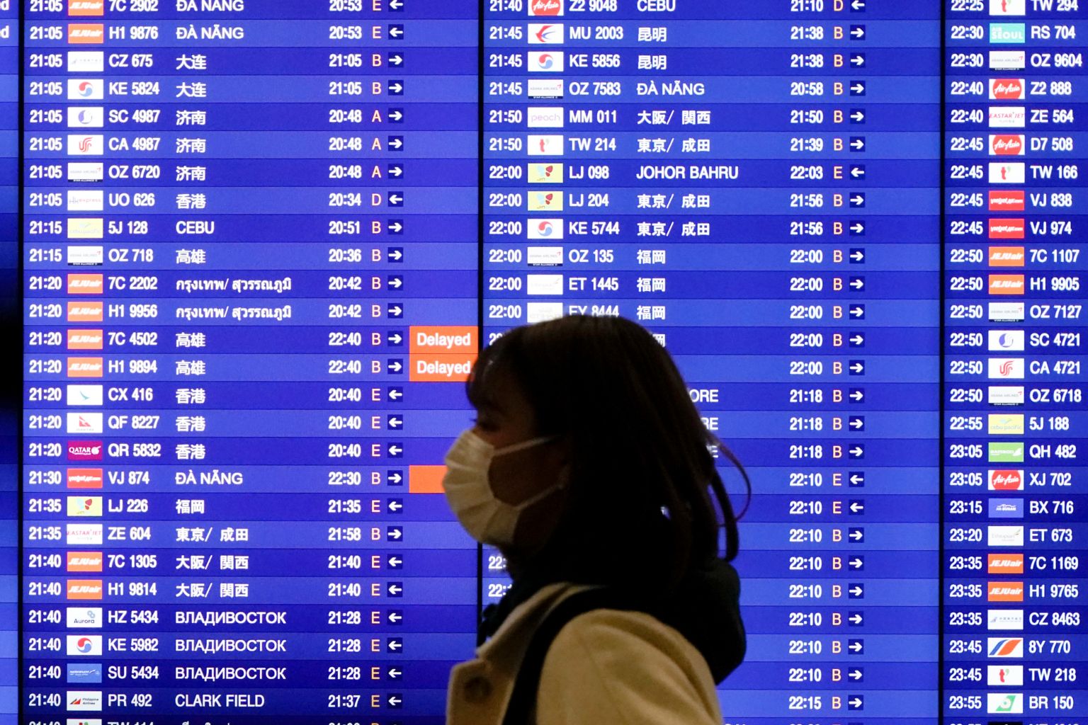 A woman wearing a mask walks past a schedules board at Incheon International Airport on Jan 3, 2020. Japan has imposed a two-week quarantine for visitors from South Korea.