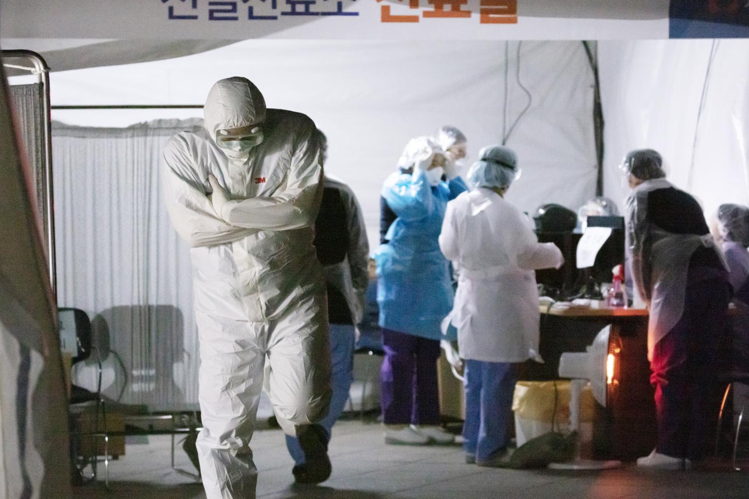 Medical workers at a special facility set up to treat coronavirus patients at a public hospital in Seoul, on March 4, 2020.