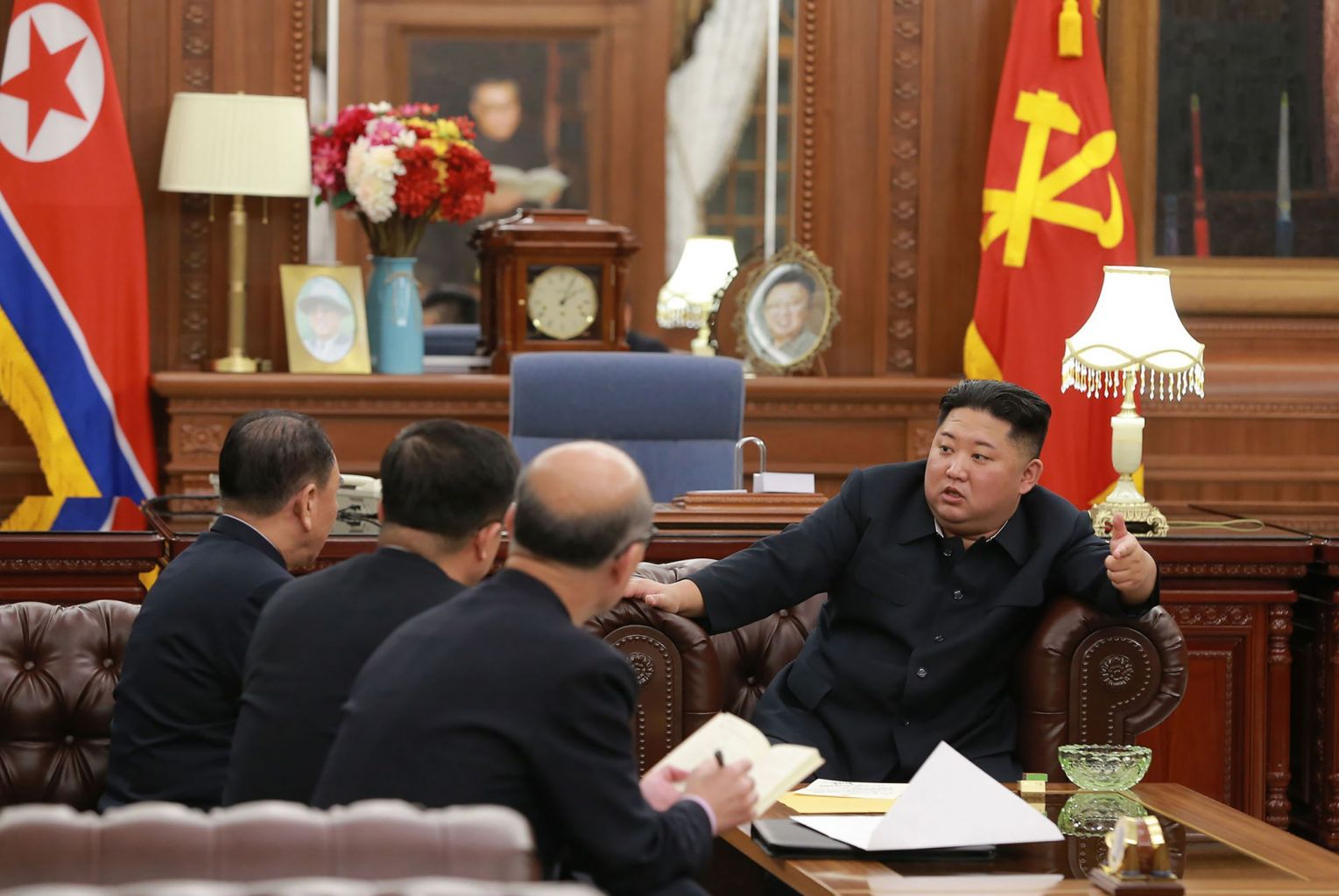 North Korean leader Kim Jong Un (right) talking with delegates sent to the US for high-level talks.