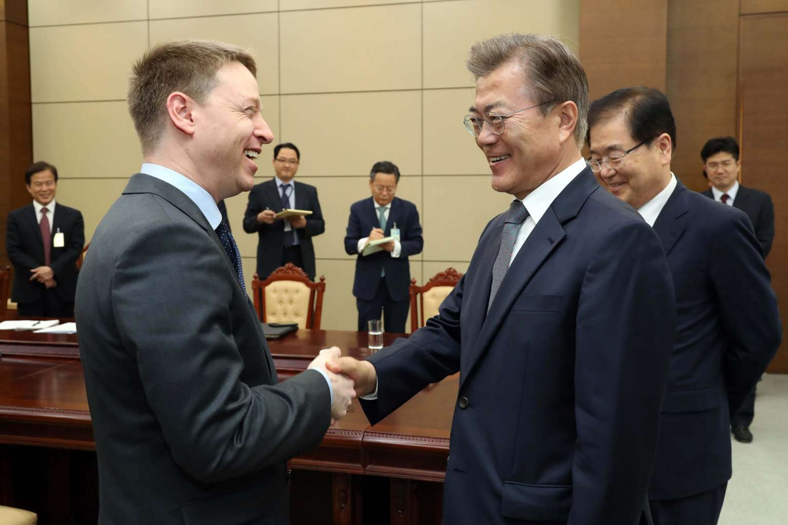 Mr Moon briefly stopped by the meeting to greet Mr Pottinger, Mr Yoon said.
