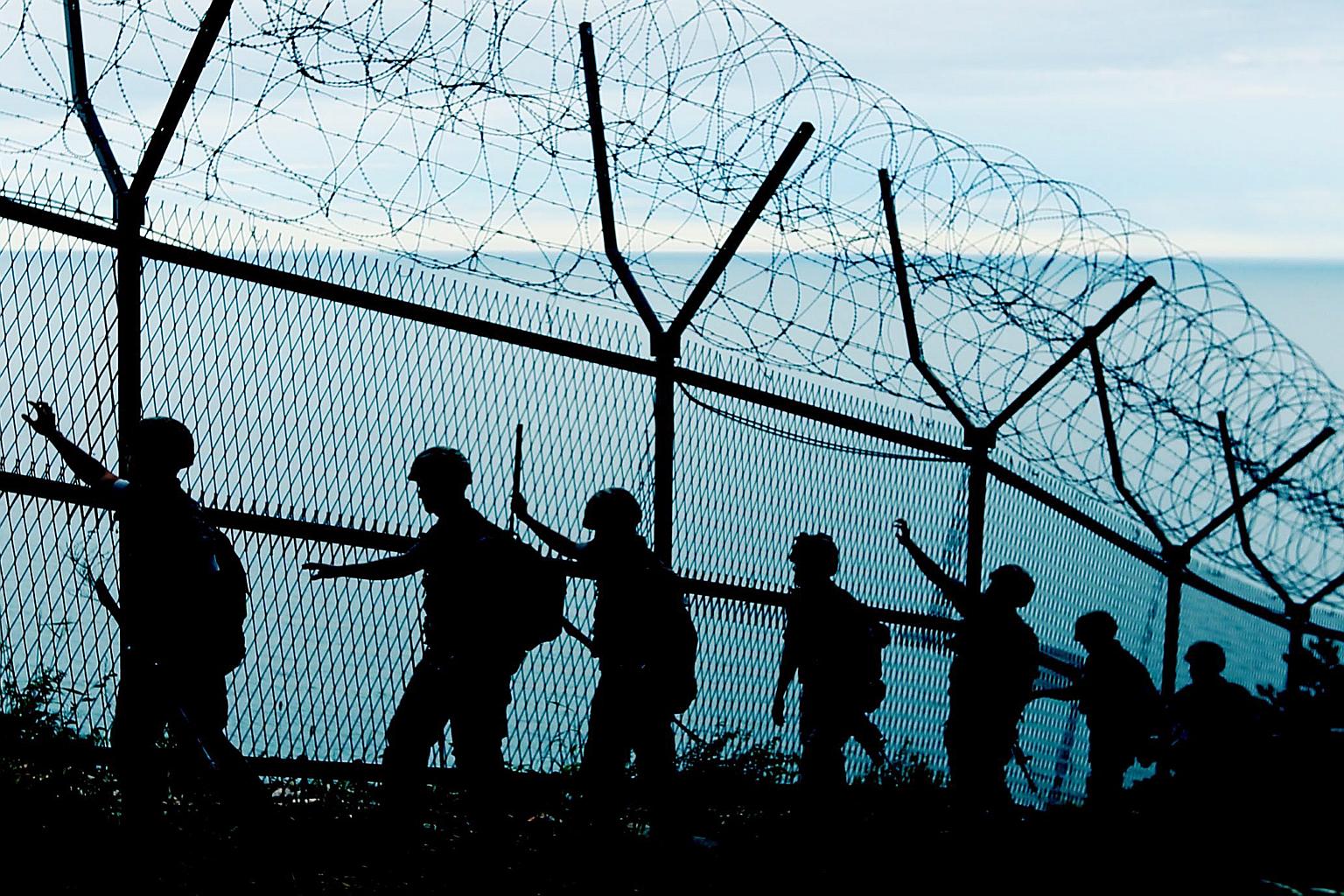 South Korean soldiers patrol along the coast of the western island of Yeonpyeong, which borders North Korea on Aug 26, 2015.