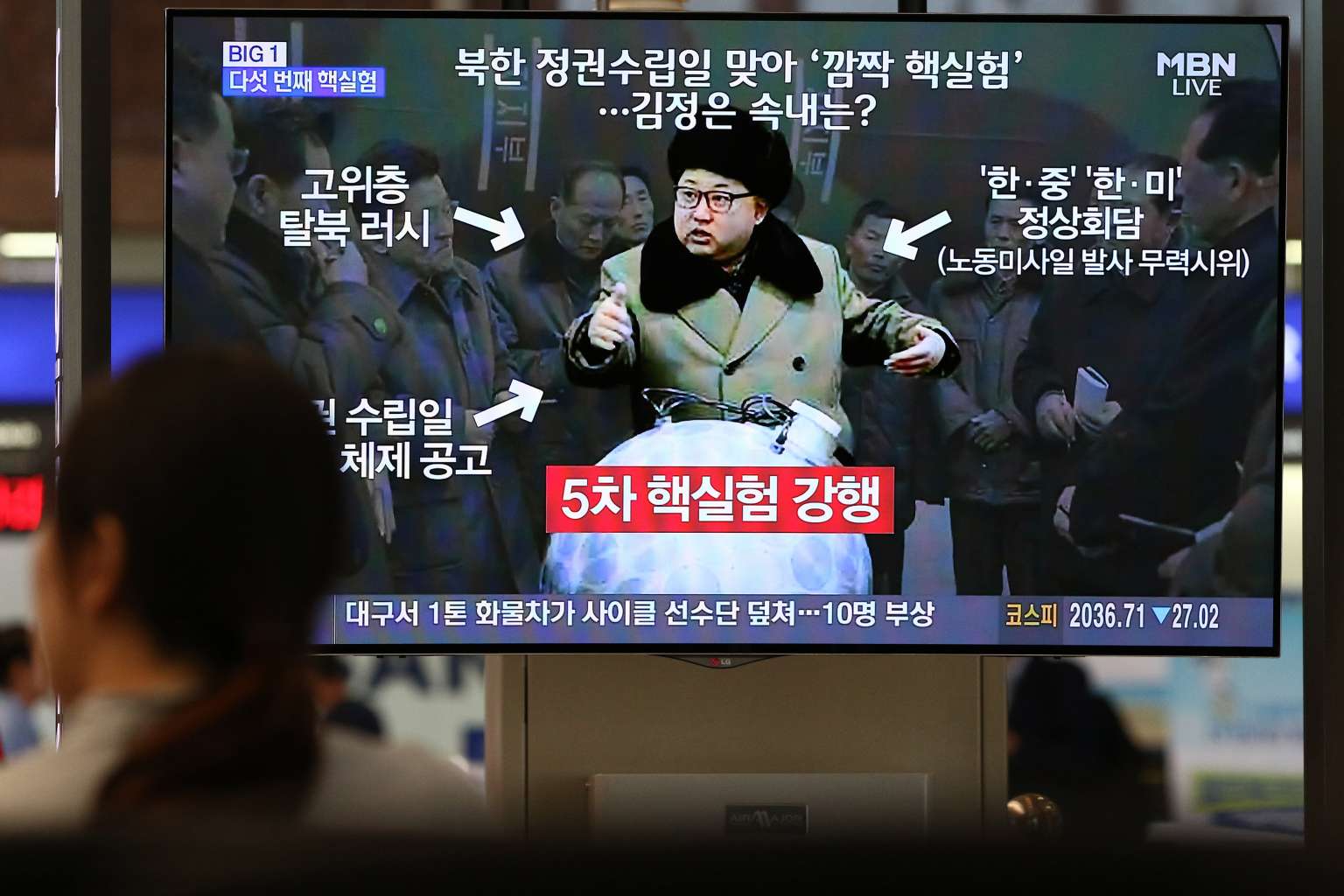 The banner headline of the top-selling Chosun Ilbo read "South Korea left unguarded before nuclear maniac".