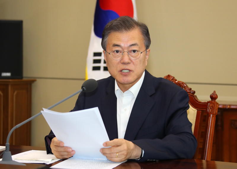 South Korean President Moon Jae In was meeting with his foreign minister, defence minister and his chief of staff, among others after US President Donald Trump cancelled his June 12, 2018, meeting with North Korean leader Kim Jong Un.