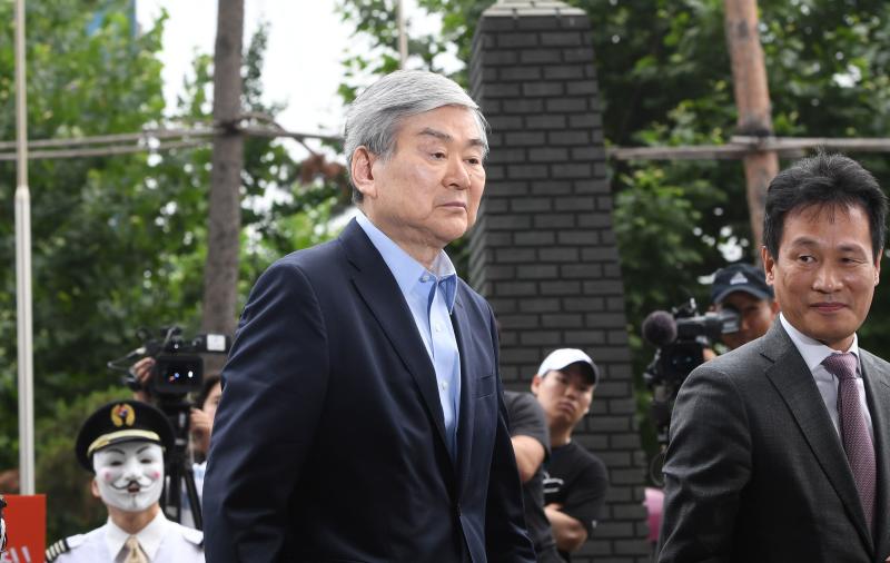 Korean Air chairman Cho Yang-ho arriving at the Seoul Southern District Prosecutors' Office for questioning over suspected tax evasion on June 28, 2018.