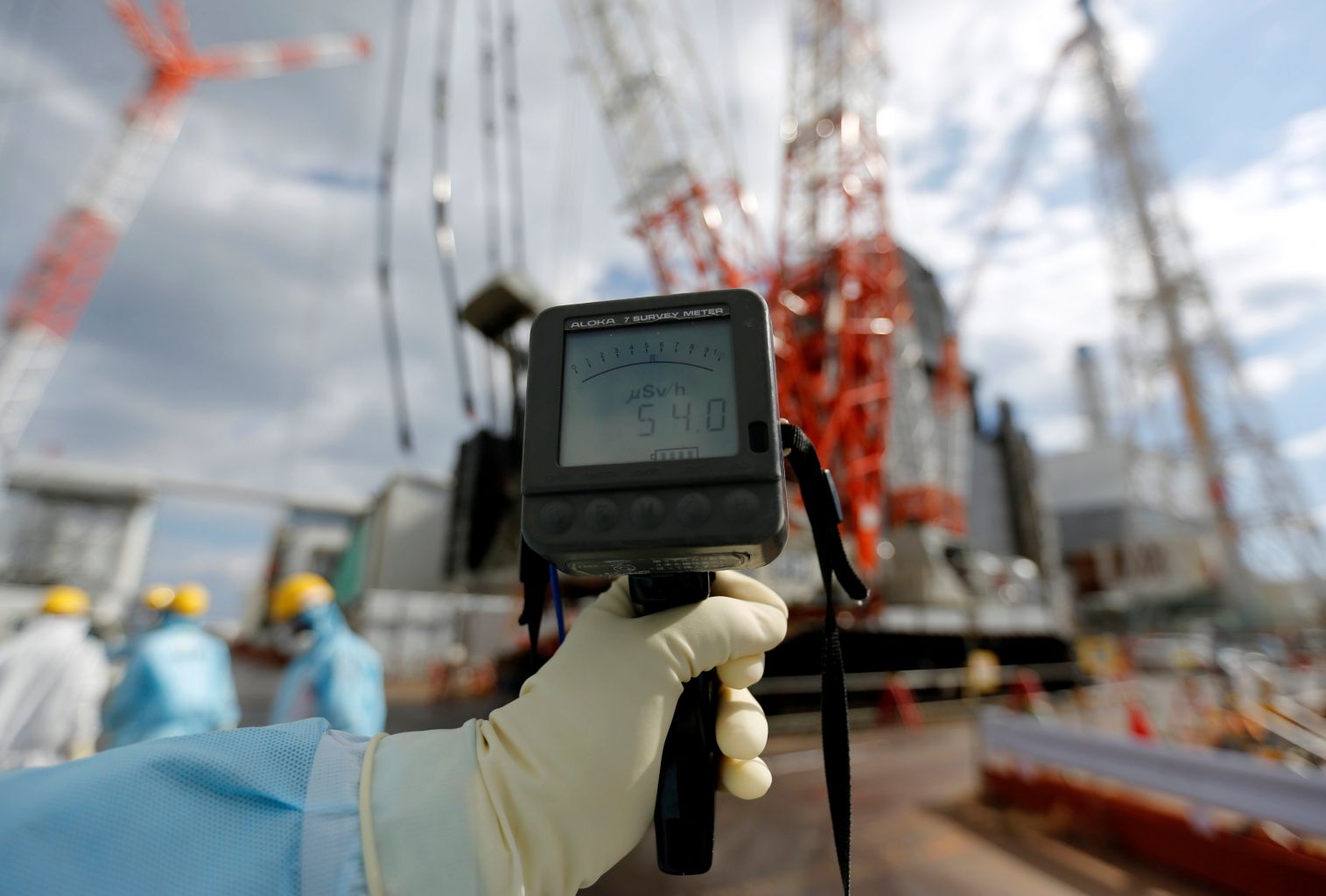 A geiger counter measures radiation levels at the crippled Fukushima Daiichi nuclear power plant, in February 2019.